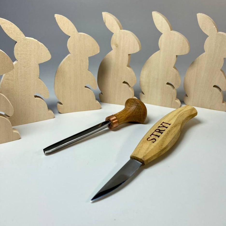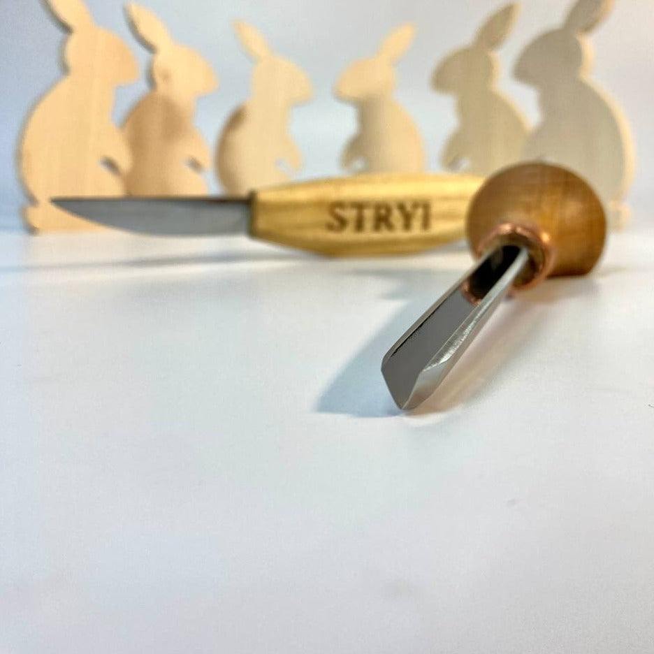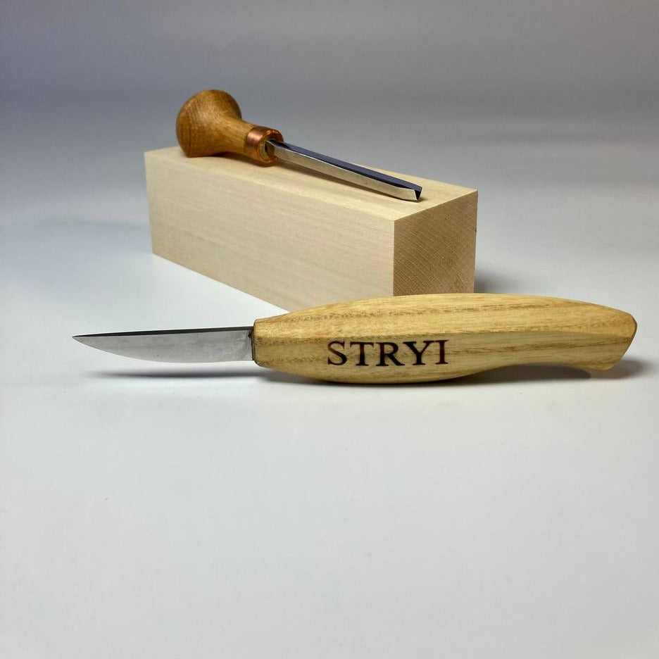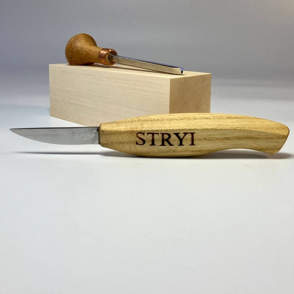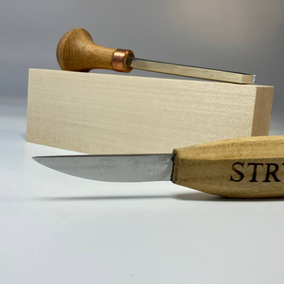 Wood carving set STRYI Start, 2 pcs is a basic toolset for the first attempts in whittling figurines handmade from wood.