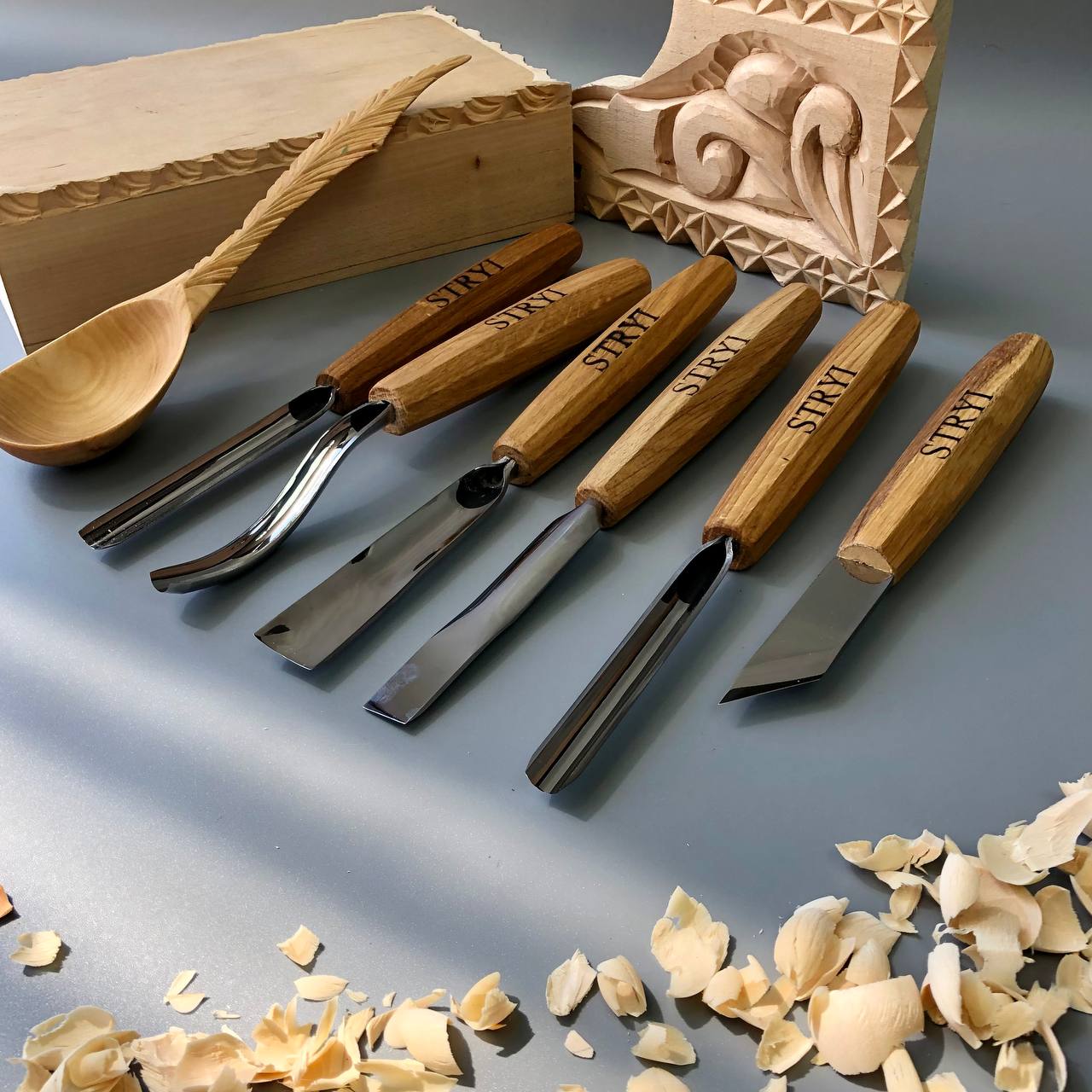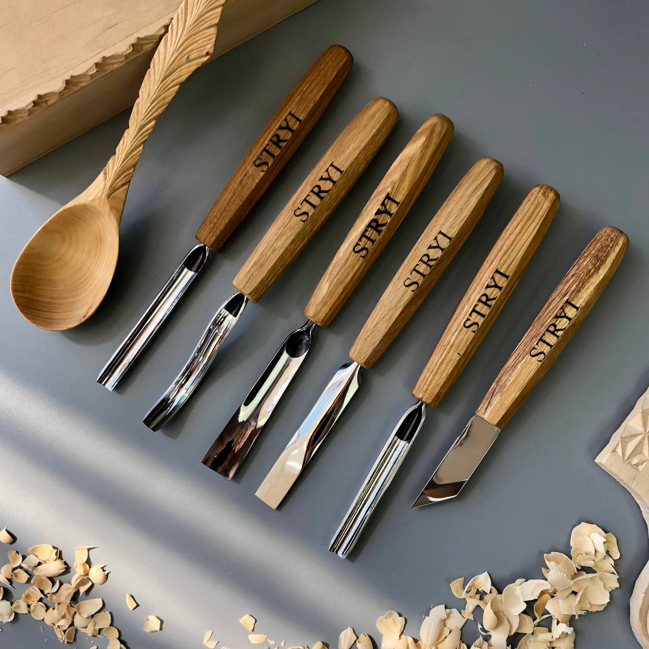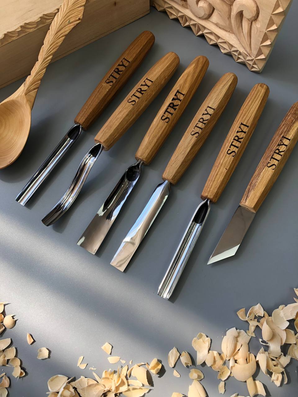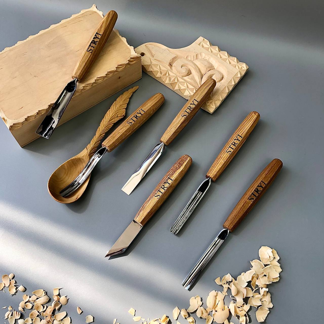 Wood carving tools set for relief carving 6pcs STRYI Profi, Gouges set, Chisels set, Gift for carver