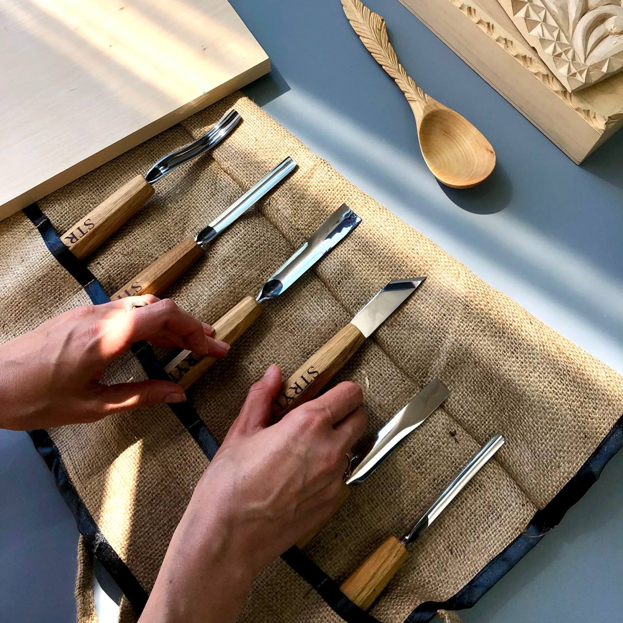 Wood carving kit for relief carving, 6 pcs STRYI Profi, is our basic kit for start carving of high quality wooden items.