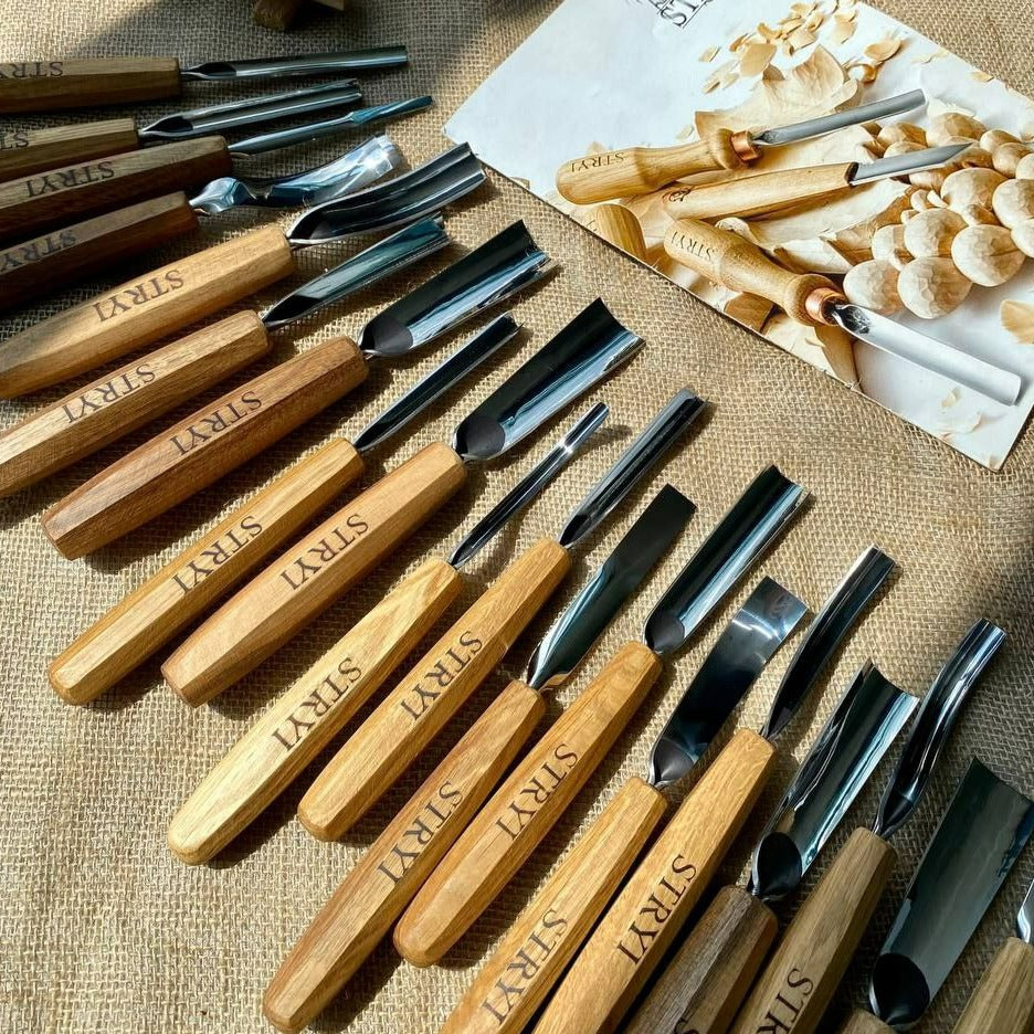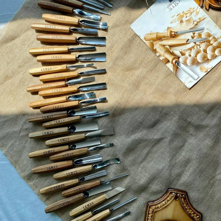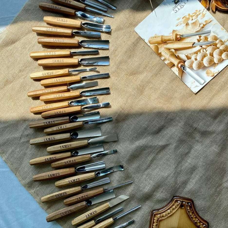 The Professional Wood Carving Tools Set 31 pcs STRYI Profi is a comprehensive collection of high-quality instruments, perfect for both beginners and seasoned professionals.