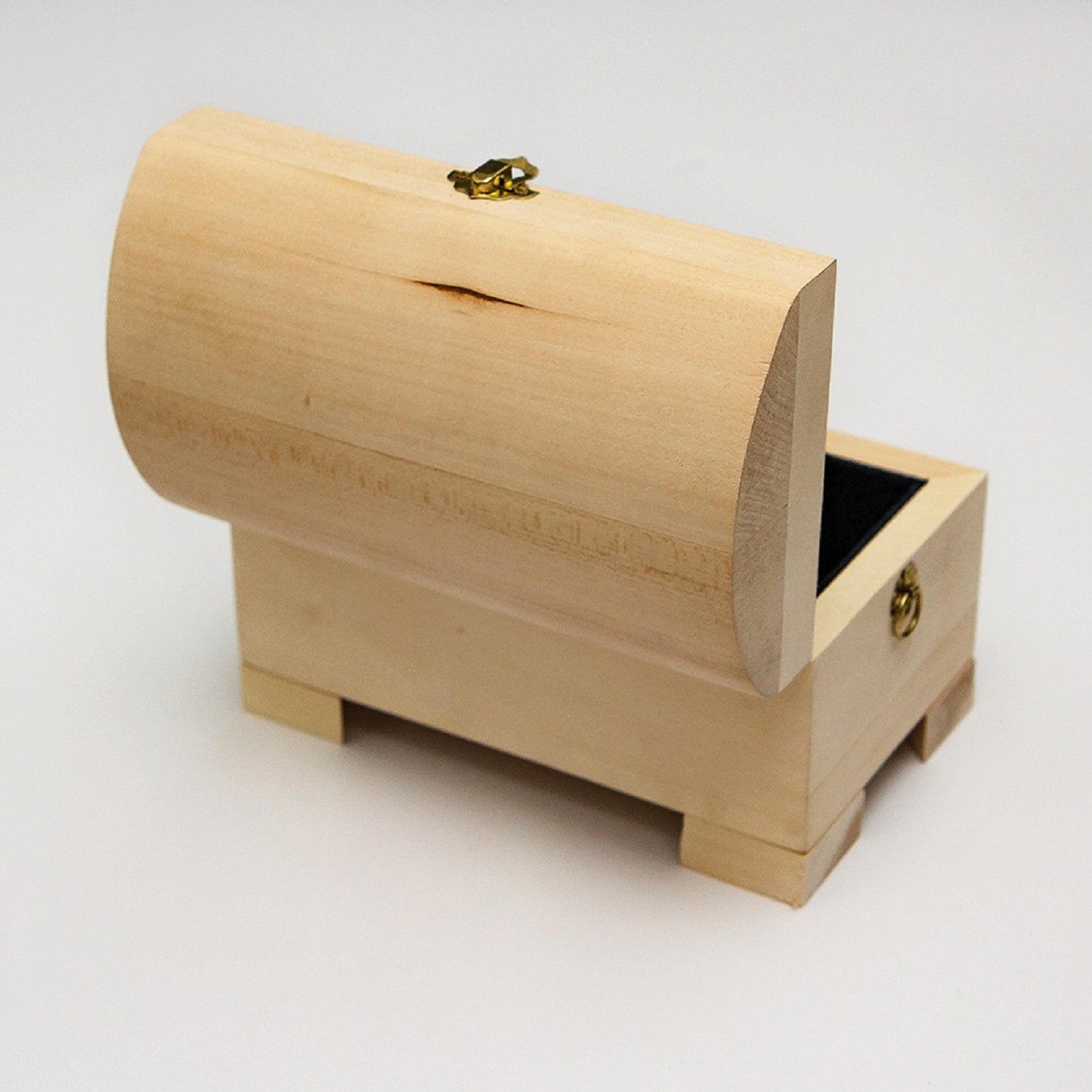 Wooden coffer for jewelry is made from bass wood and can be used in wood carving to decorate the surface with different patterns.